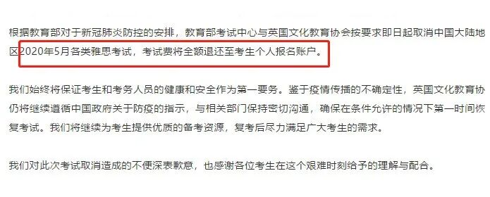 最新消息,4月20日下午,雅思官方宣布取消5月份考試!